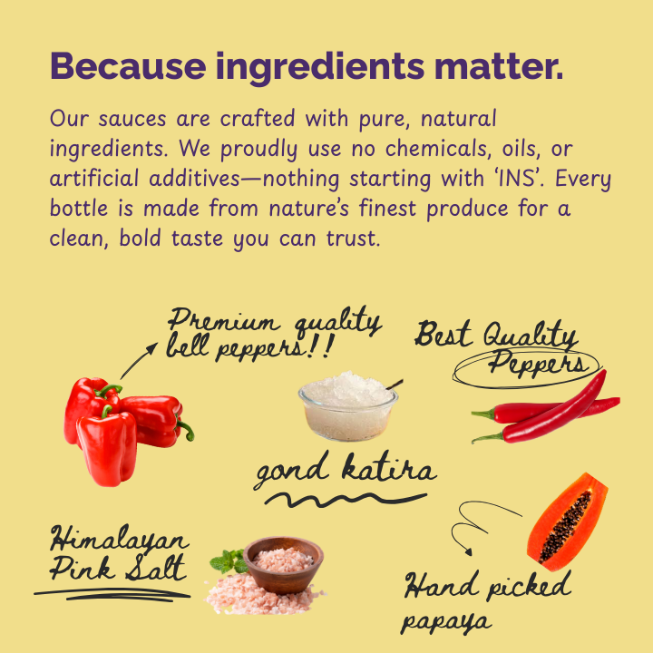 Spicy, Sweet Garlicy, and Tangy with fermented depth Balanced sweetness and spiciness. Perfect for most palates as the spice level is mild Works well with sandwiches, fries, momos, wontons, spring rolls etc. Can literally work with most dishes as the flavor is quite balanced.